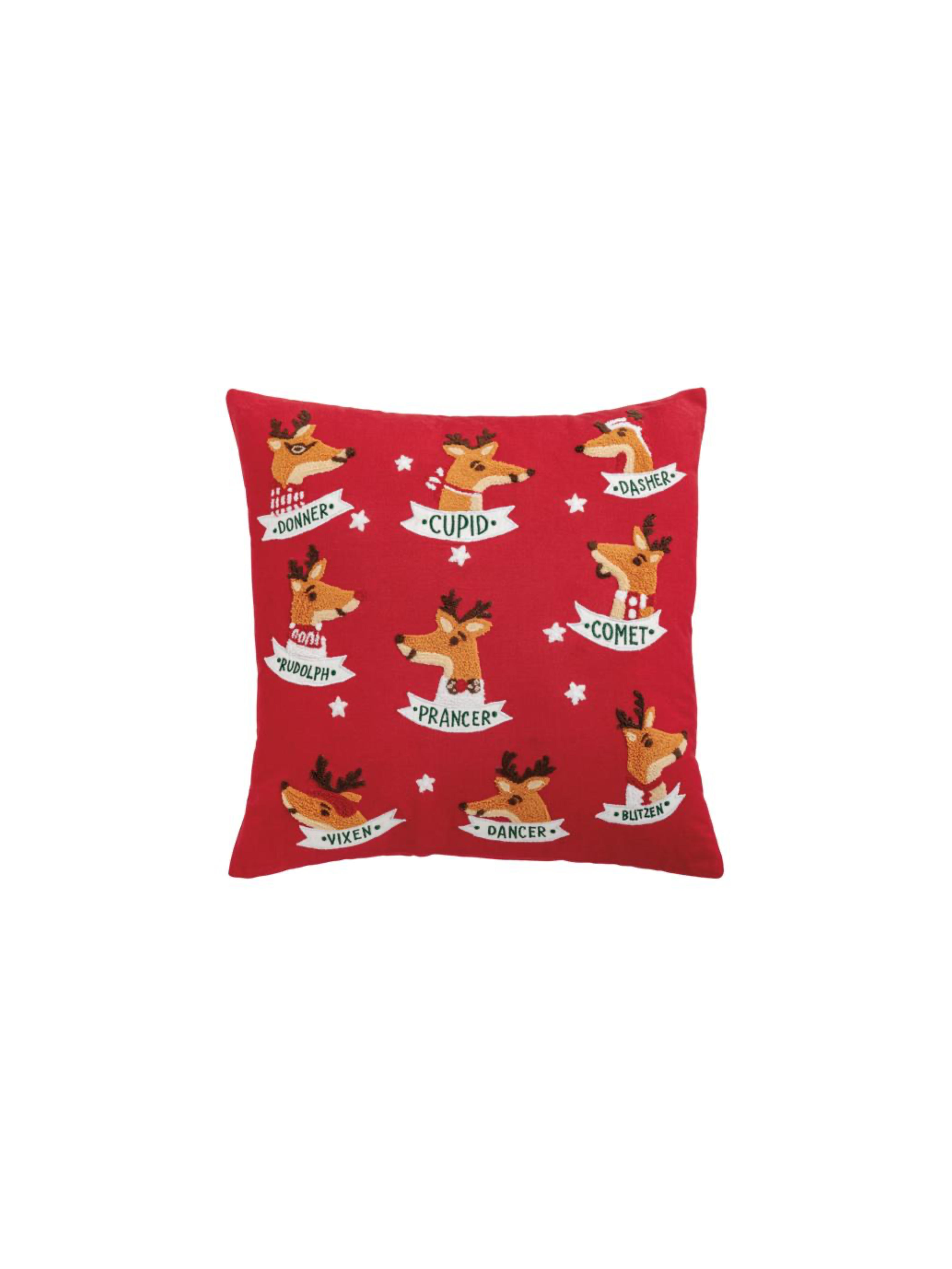 Reindeer Name Pillow offers a charming and festive touch to any home decor. Crafted with an appliquéd design on durable canvas, this pillow is both stylish and functional. The convenient zipper closure ensures easy removal and cleaning. Measuring 20" x 20", it is the perfect size to accentuate your living space