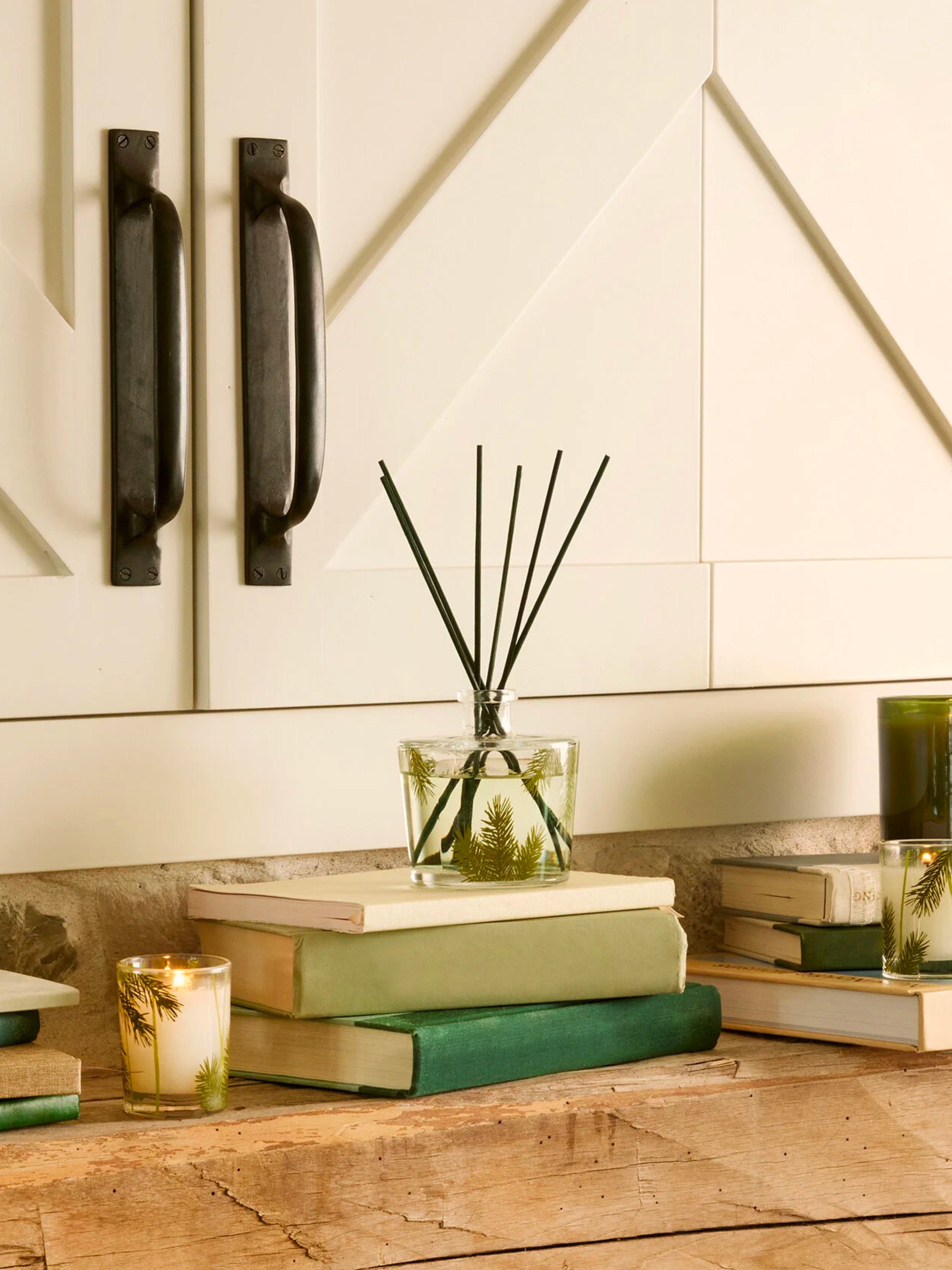 Embellished with the classic pine needle design, this home decor piece is truly a classic. Rattan reeds absorb the oil, releasing a fresh ambiance to large spaces.