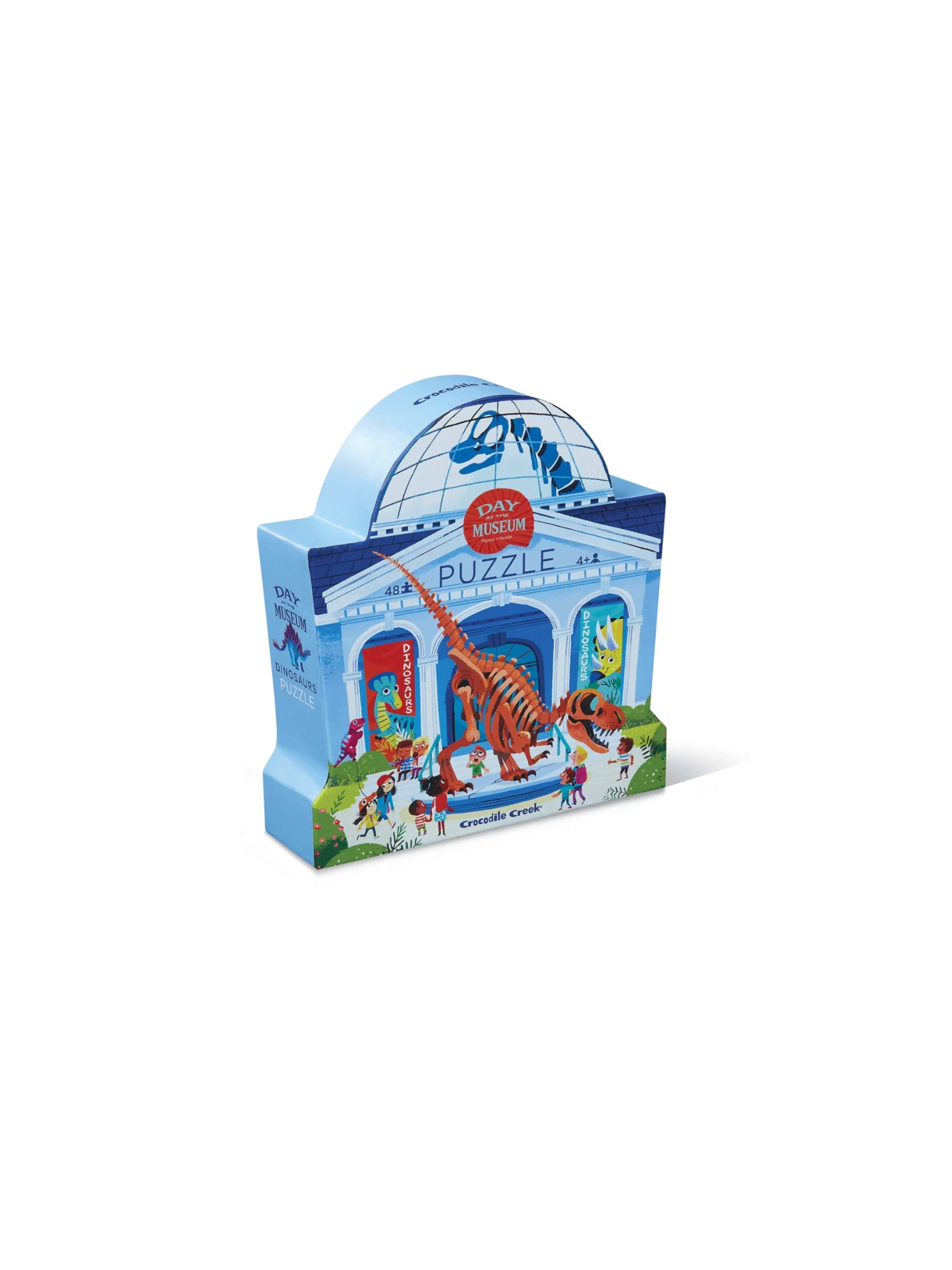 Kids Love to Visit the Dinosaur Museum! This Crocodile CreekDay at the Museum 48 piece puzzle will transport you to the world of a fun, whimsical natural history museum revisiting a favorite museum or remembering a wonderful outing with family, friends or classmates! Walk into the great hall of the museum and be awed by the incredible giant dinosaurs as well as mummies on the loose, archeological digs, children from all kinds of backgrounds and much, much more!