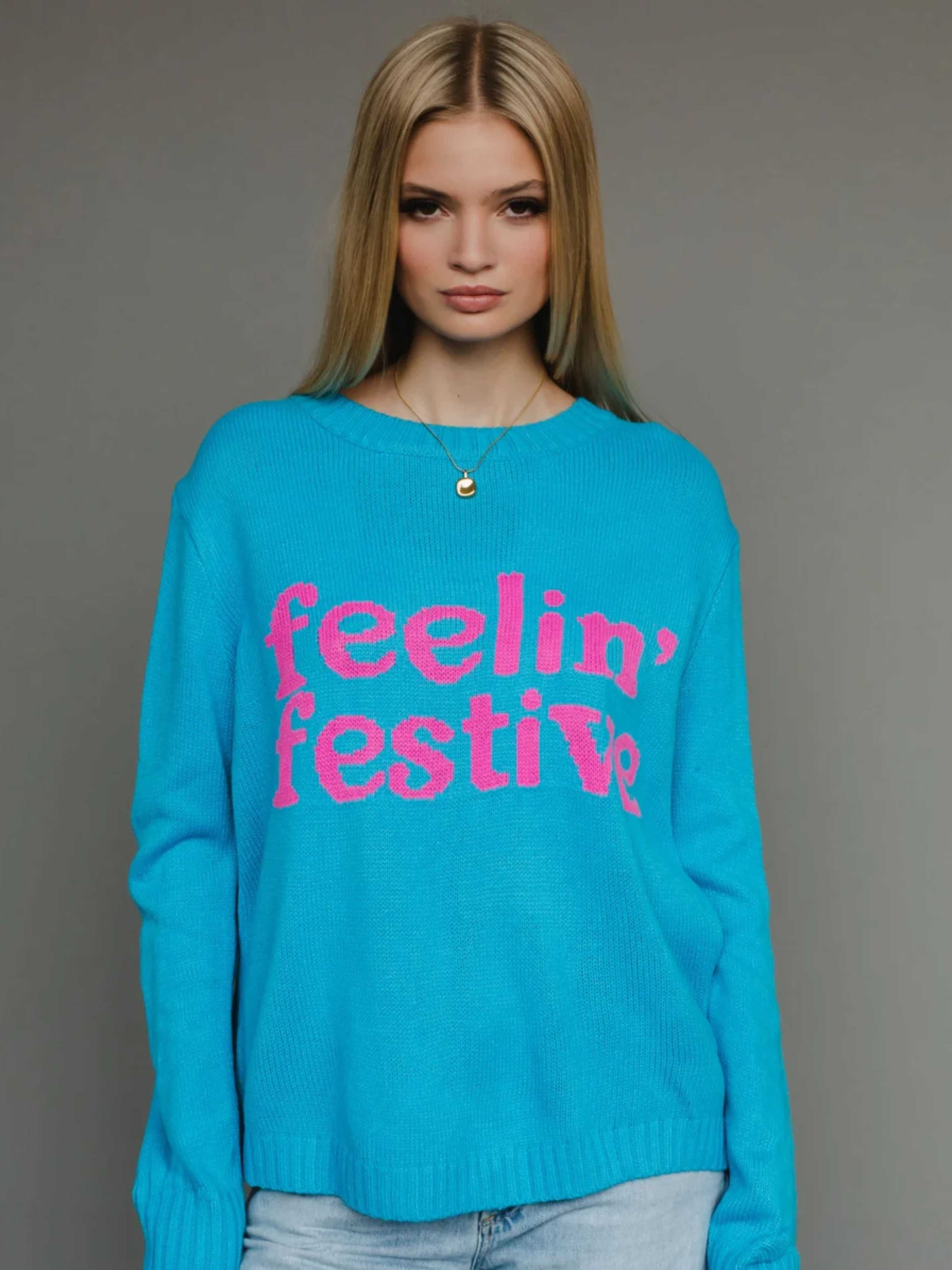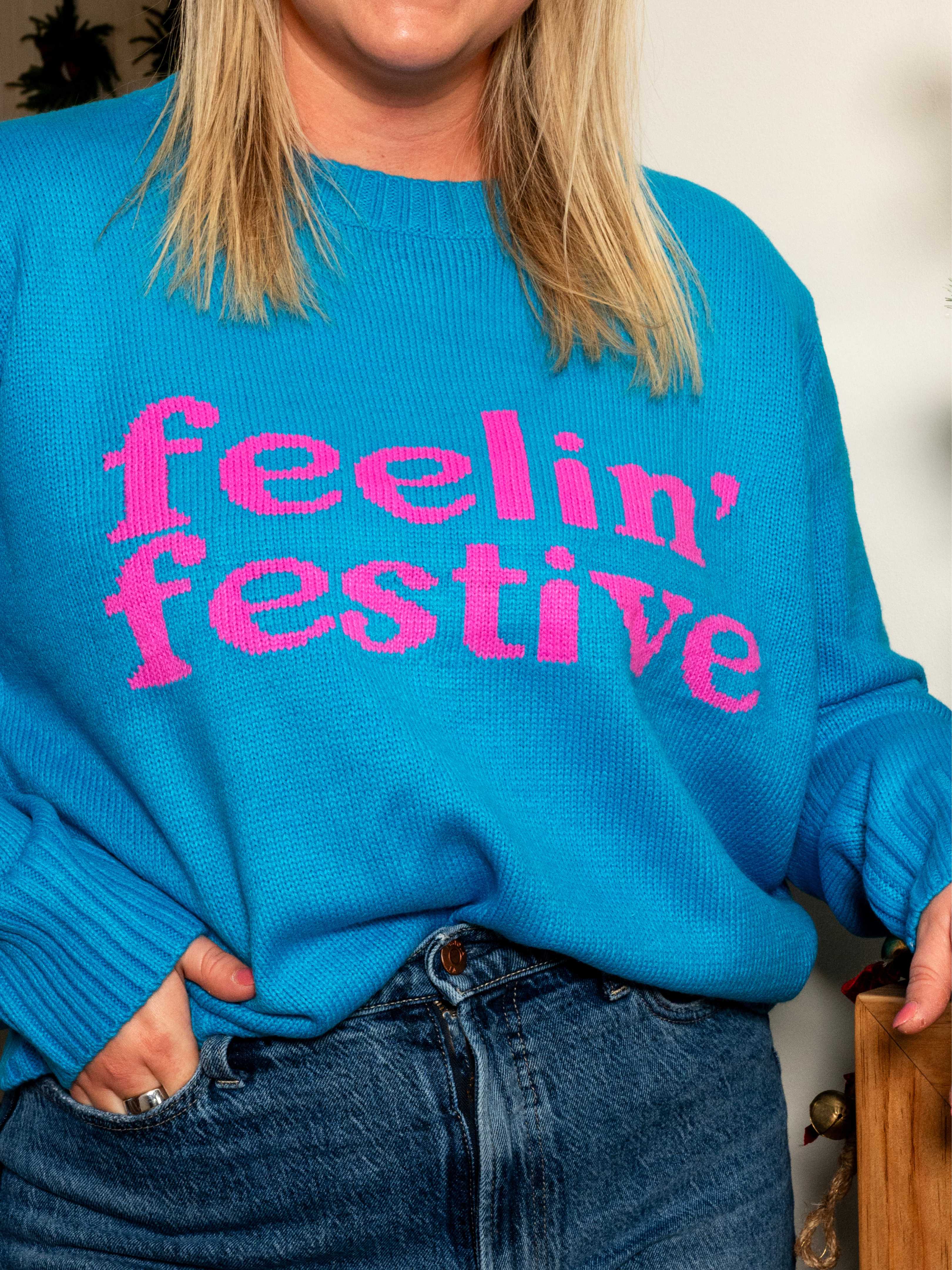 Feelin' Festive Blue Sweater
