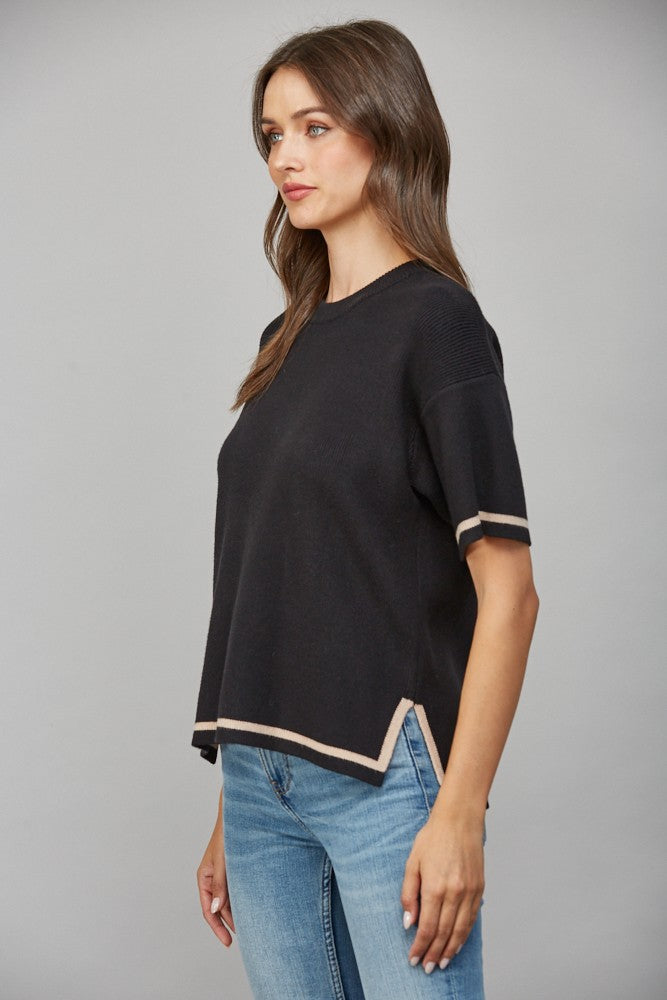 Tipped Side Slit Sweater Black