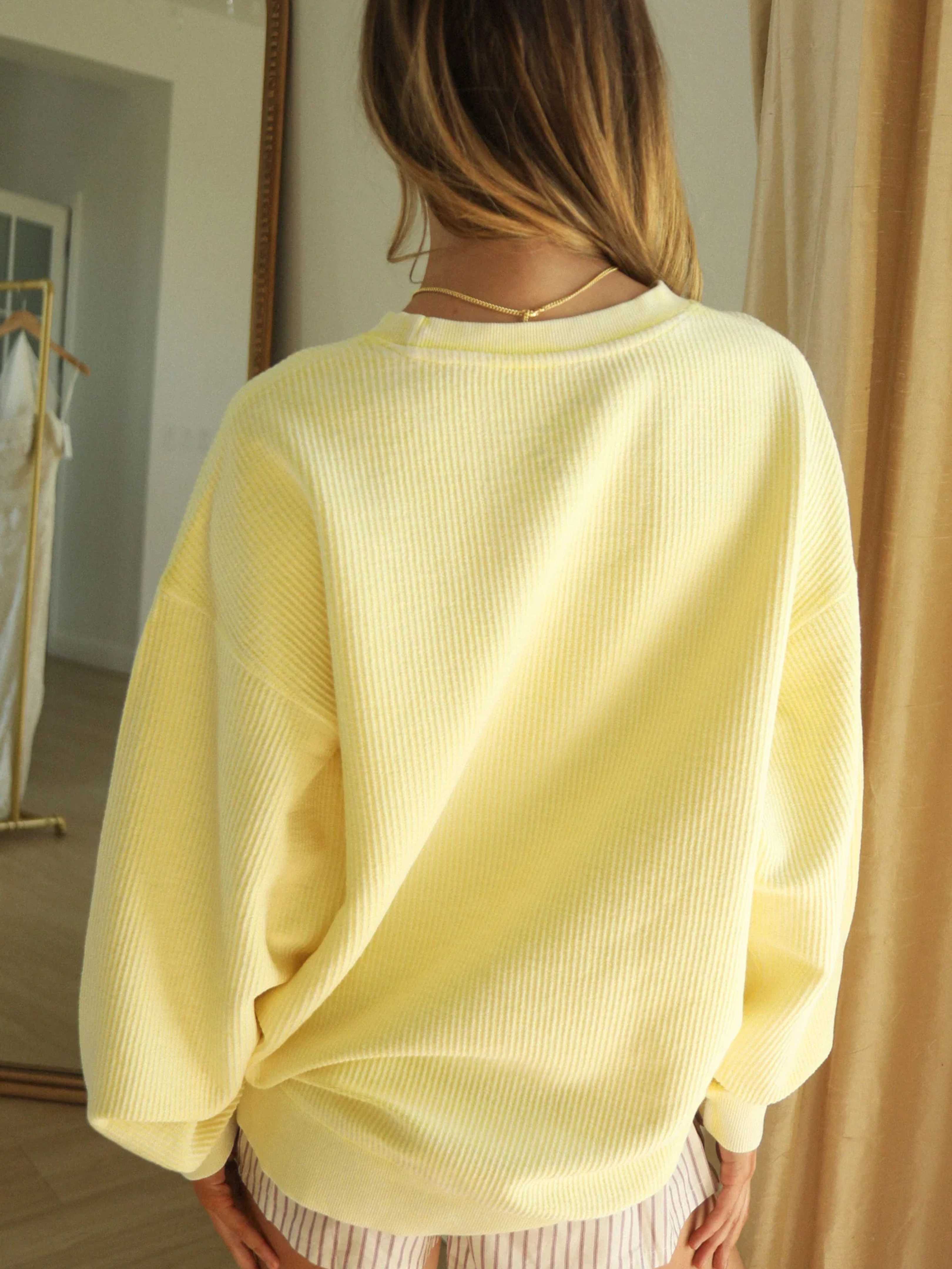 From the bachelorette party to the wedding weekend, this canary yellow corded sweatshirt will take the bride (or the wedding party) from point a to point b. This adorable corded sweatshirt features an oversized baby pink heart with "best weekend ever" scripted in the center.