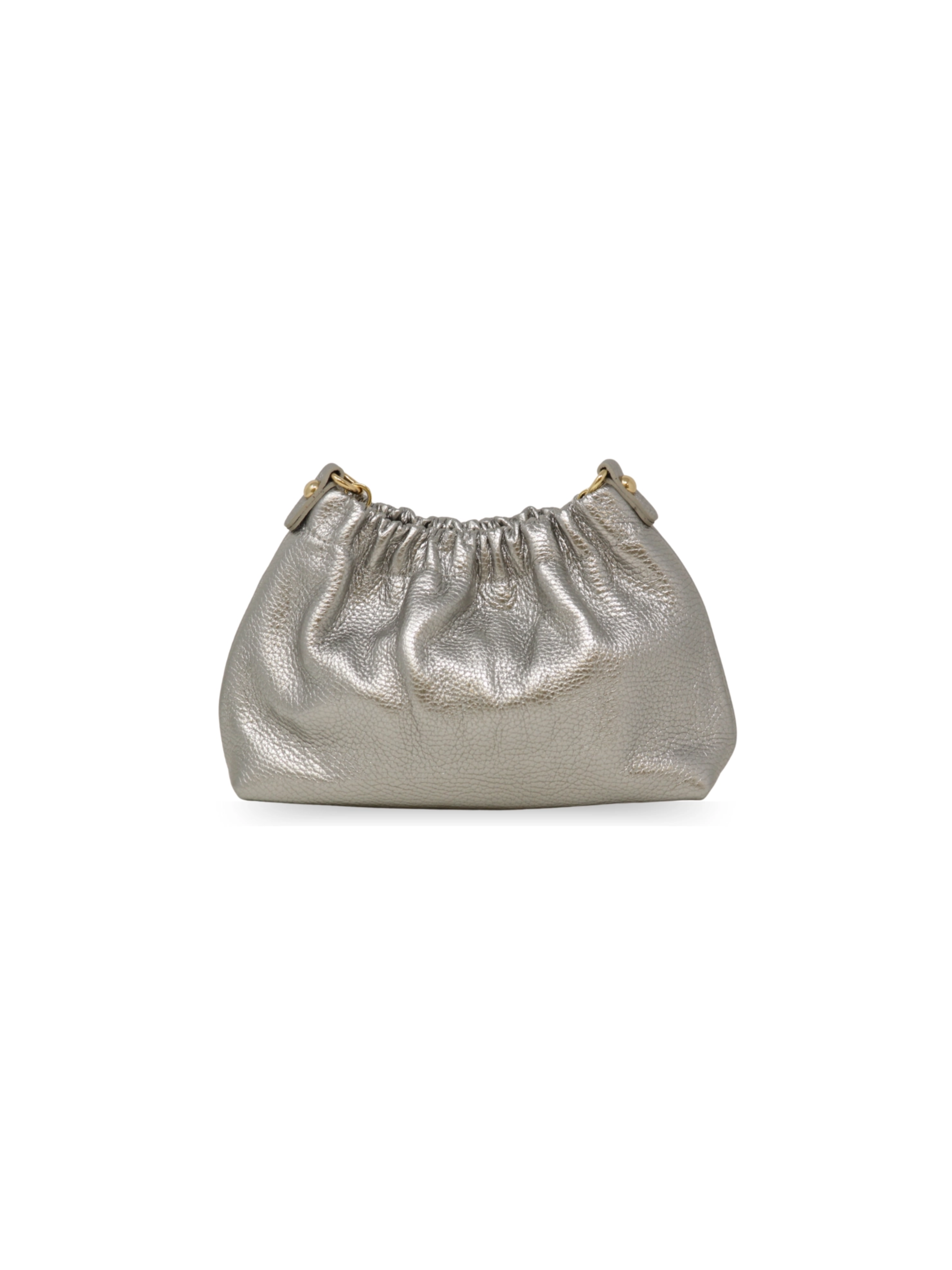 Crafted with Italian Leather. It's a versatile pleated clutch bag with a convenient chain crossbody strap and a hidden magnetic snap closure.