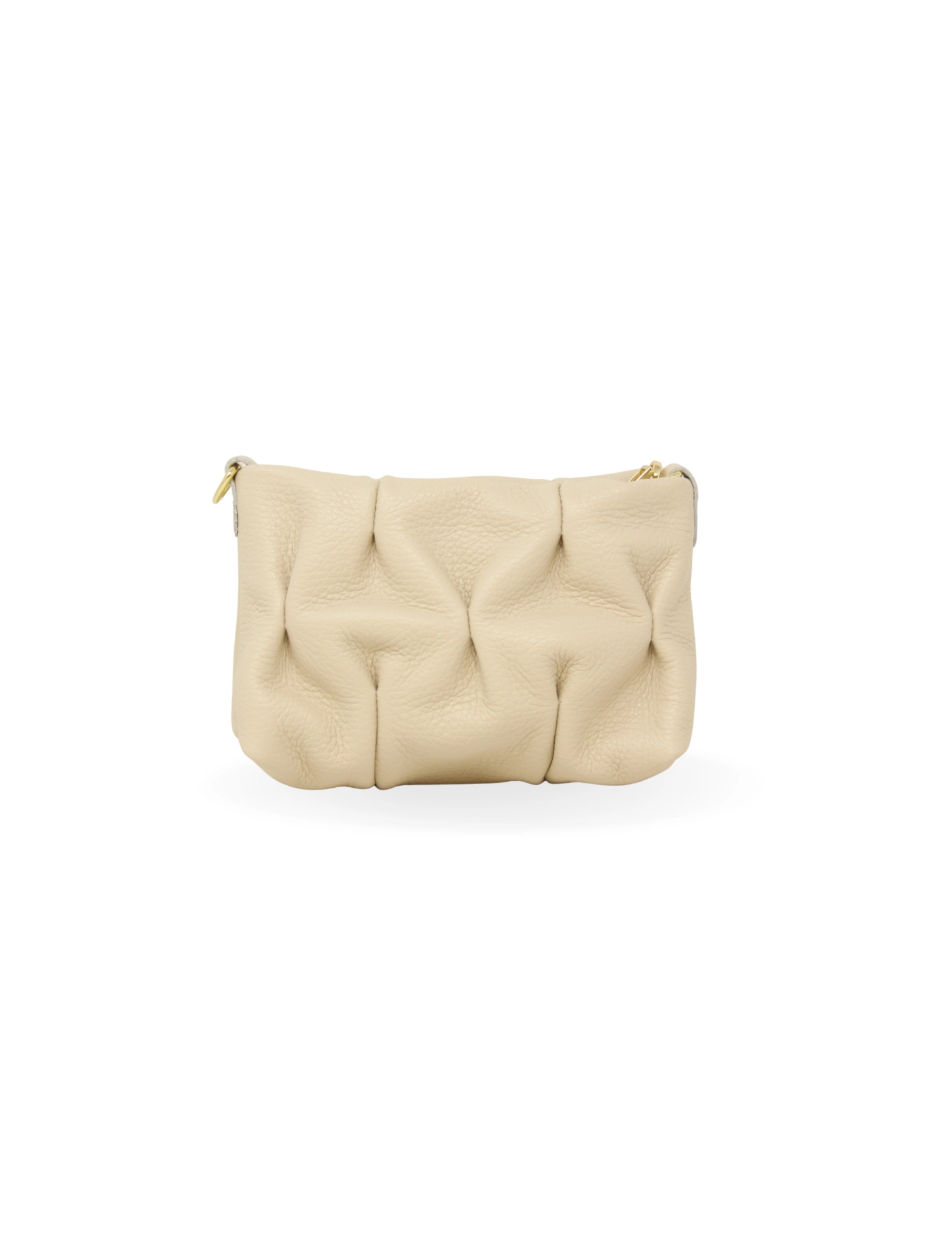 Made from Italian leather and features a long gold chain for crossbody wear.