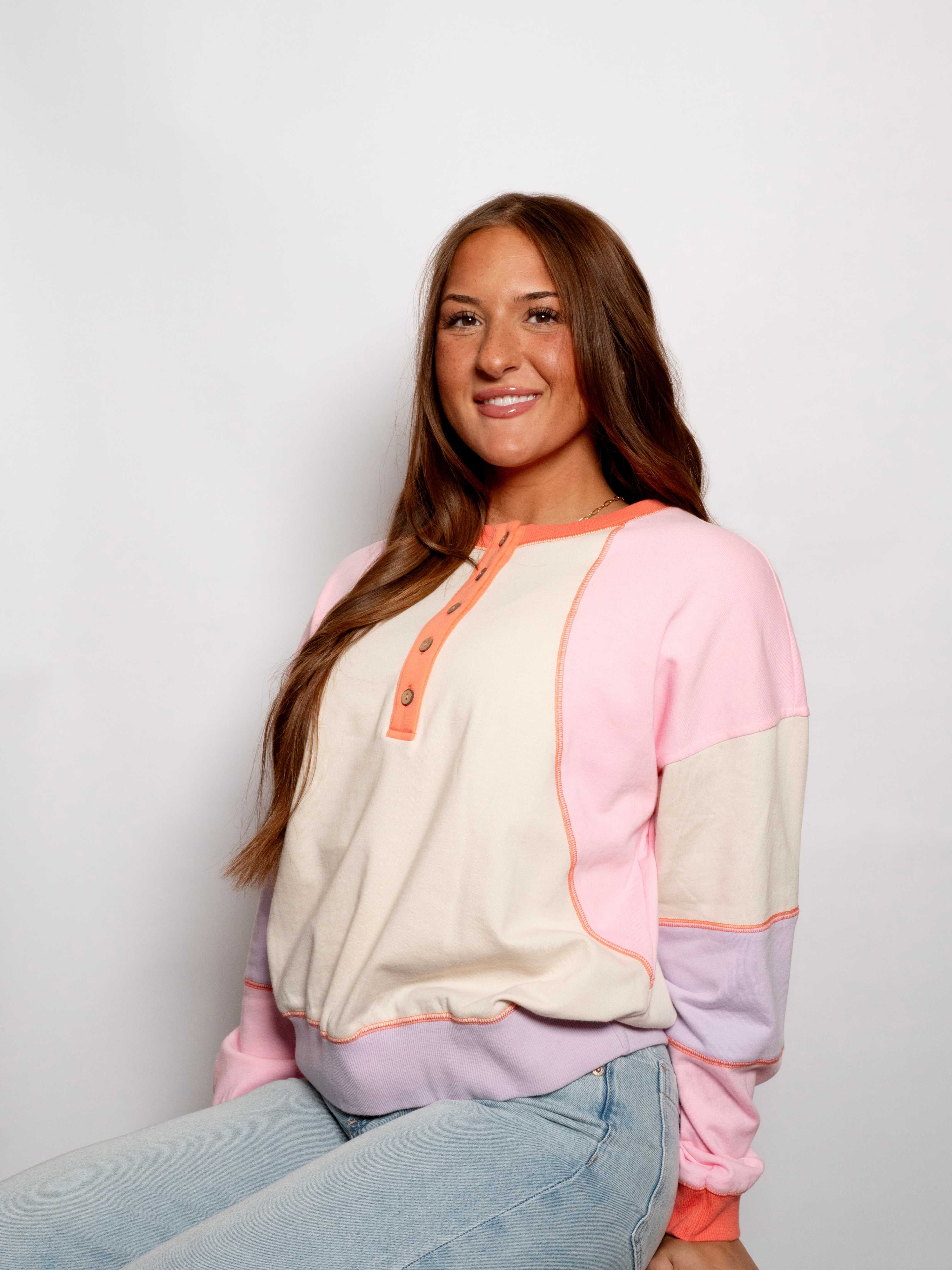 Sand/Coral Henley Block Tee
